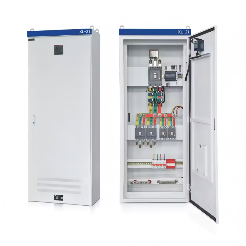 XL-21 குறைந்த மின்னழுத்த மின் விநியோக அமைச்சரவை முதன்மையாக தொழில்துறை மற்றும் சுரங்க நிறுவனங்களில் மின்சார விநியோகத்திற்காக மூன்று-கட்ட, மூன்று-வயர் மற்றும் மூன்று-கட்ட, நான்கு-வயர் அமைப்புகளை 50 ஹெர்ட்ஸ் வரையிலான AC அதிர்வெண்கள் மற்றும் 500 V வரை மின்னழுத்தம் மற்றும் மின் விளக்குகளுக்குப் பயன்படுத்தப்படுகிறது. இது வளைந்த எஃகு தகடுகளால் கட்டப்பட்ட ஒரு மூடிய உறை. கத்தி சுவிட்ச் இயக்க கைப்பிடி மேல் வலது முன் நெடுவரிசையில் அமைந்துள்ளது, இது சக்தி மாறுதலை வழங்குகிறது. பஸ்பார் மின்னழுத்தத்தைக் குறிக்க விநியோகப் பலகத்தில் வோல்ட்மீட்டர் நிறுவப்பட்டுள்ளது. முன் கதவு எளிதான ஆய்வு மற்றும் பராமரிப்புக்காக அனைத்து உள் கூறுகளையும் வெளிப்படுத்துகிறது. இந்த விநியோக அமைச்சரவை அதிநவீன கூறுகளைப் பயன்படுத்துகிறது, இதன் விளைவாக ஒரு சிறிய வடிவமைப்பு, எளிதான பராமரிப்பு மற்றும் நெகிழ்வான வயரிங் உள்ளமைவுகள். ஷார்ட் சர்க்யூட் பாதுகாப்பிற்கான ஏர் சர்க்யூட் பிரேக்கர்கள் மற்றும் ஃப்யூஸ்கள் தவிர, கேபினட் கான்டாக்டர்கள் மற்றும் தெர்மல் ரிலேக்களையும் கொண்டுள்ளது. முன் கதவு பொத்தான்கள் மற்றும் காட்டி விளக்குகளுக்கு இடமளிக்கிறது.